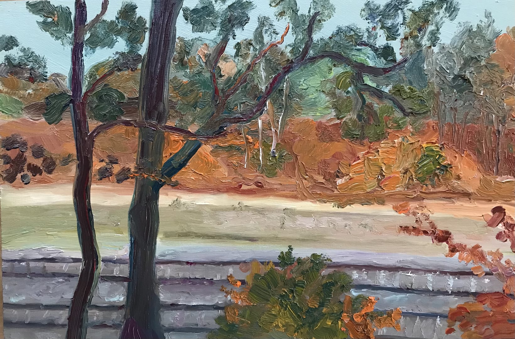 2020 Dag 22, Molenhoek uitzicht op spoor vanaf Lindenlaan €55,00 olie op paneel uniek werk grootte: 30 x 20 cm gesigneerd Op voorraad 2020 Dag 22, Molenhoek uitzicht op spoor vanaf Lindenlaan aantal Koop